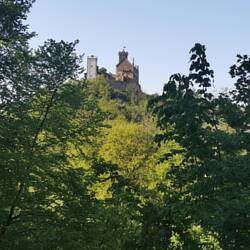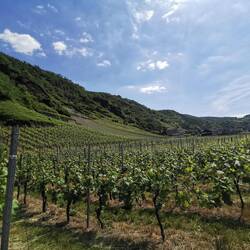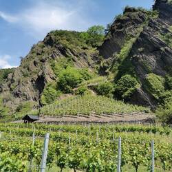 Dann die ersten Weinhänge! Und mit ihnen Burgruinen, kleine und große Schlösser (die wohl oft reichen Winzern gehören sollen), irgendwie an den Berg geklebt....