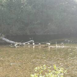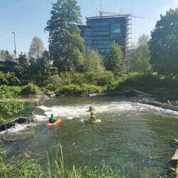 Die so vielen Küken der Kandagänse interessieren sich an unserer Weiterfahrt auch nicht so recht, und so bleibt uns manches Mal nur ein Schlenker oder eine Vollbremsung, um sie nicht über den Haufen zu fahren. Ich find es total faszinierend und wunderschön, dieses besondere Naturerlebnis mitten im sonst so verschmähten Ruhrpott erleben zu könnnen.