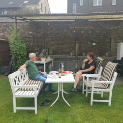 Je später der Nachmittag um so mehr Gäste... und so sitze ich schnell nicht mehr alleine. Wieder sind es interessante Frauen, die ich kennenlerne - alles Einheimische. Eine Gymnasiallehrerin für Deutsch und katholische Religion, die begeistert von Waldpädagogik erzählt, eine Witwe, die bereits seit vielen Jahren alleine die Welt bereist (Länder wie Myanmar, Usbekistan, Niger...) oder eine Erzieherin, die nach 30 Jahren Luxemburg wieder in ihre Heimat zurückgekehrt ist...spannend, ihren Erzählungen zu lauschen.