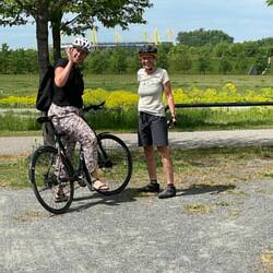 Ulla, Babsi und ich verlassen Dortmund über den Radweg "Rheinischer Esel", die ehemalige Bahnstrecke zwischen Dortmund und Bochum. Zechen mit den wunderbaren Namen "Gottessegen", "Ringeltaube" oder "Nachtigall" wurden damals beliefert, aber die Marktfrauen gaben der Bahnstrecke ihren Namen. Wie bepackte Esel trugen sie wohl ihre Waren mit sich....
