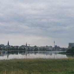 Nur wenige Kilometer, dann sind wir schon an der Rheinpromenade in Düsseldorf. Kindergärten, Schulausflüge, Jogger, schwangere und nicht schwangere Mütter, Geschäftsleute in der Pause, Arbeiter, Schicki-Mickis....ein Potpourri der Berufe, Nationen, Interessen, die sich hier tummeln. Und mittendrin der Rhein, der ruhig und gemächlich dahinfließt.