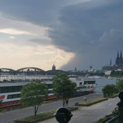 Die Bayer-Werke in Dormagen und Leverkusen, die Ford-Werke in Köln...immer im Nacken die sich zu dunklen drohenden Wolkengebilden aufbäumende Gewitterfront. Ein faszinierendes Lichtspiel zwischen Sonne und drohendem Starkregen über dem Kölner Dom und unsere Wege trennen sich. Schnell, schnell umarmt und verabschiedet und ich sprinte (soweit ich die Kraft noch dazu habe) los. Es könnte ja noch klappen...