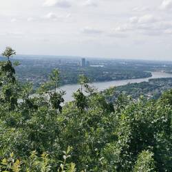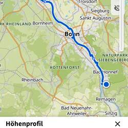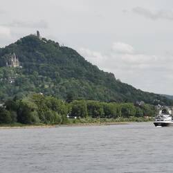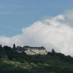 Da genieße ich doch lieber den Blick auf die andere Rheinseite, auf den Petersberg mit dem ehemaligen Gästehaus der Bundesregierung und den Drachenfels!