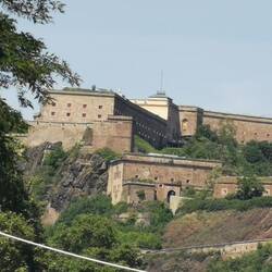 Noch ein kurzer Blick auf die auf schroffen Felshängen erbaute Festung Ehrenbreitstein (eine preußische Befestigungsanlage aus dem 16. Jhd.) und ich begebe mich wieder unter die vielen Sonntagsausflügler und mit ihnen zur Lahnmündung mit Burg Lahneck und dem weißen Schloss Stolzenfels.