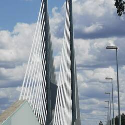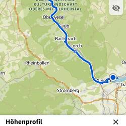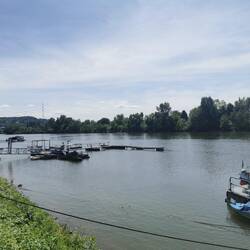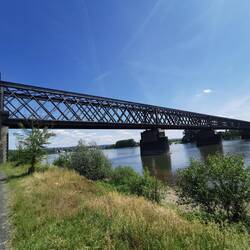 Was ich gestern noch vom Rheinradweg geschwärmt habe, so enttäuscht bin ich heute. Ich habe zwar meistens Sicht auf den 1.232,7 km langen Strom, aber viel zu oft über Bahngleise oder Bundesstraßen hinweg.