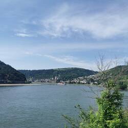 Schon der heutige Morgen fängt interessant an. Meine jungen Wirte kommen aus Moldavien und haben erst vor einem Jahr das etwas heruntergekommene Hotel in Filsen (bei Boppard) gekauft. Ich bewundere so sehr ihren Idealismus und ihren Glauben daran, dass sie etwas erreichen werden....Und wenn nächstes Jahr ihre Töchter kommen, dann wird alles gut....Was ihnen auf jeden Fall gelingt, ist ein phantastisches Frühstück und ich starte wider Erwarten trocken (eigentlich soll es in Strömen regnen) in Richtung Fähre, die ich gerade noch so erreiche...