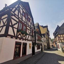 Fortan geht es durch das UNESCO-Welterbe Oberes Mittelrheintal. Die Strecke zwischen Koblenz und Mainz gilt als das schönste Stück des gesamten Rheins zwischen Alpen und Nordsee. Und es ist wirklich schön hier zu radeln. Straße und Bahn sind nicht mehr zwischen mir und dem Rhein sondern rechts daneben, die Landschaft wirkt rau und wild und die Weinorte sind wunderschön. In Bad Salzig bewundere ich die größte freihängende Kuckucksuhr der Welt (warum hängt die eigentlich nicht im Schwarzwald?), in St. Goar das Loreley-Haus (in ihm soll einst die "Lurlei" ihre Jugendjahre verbracht haben) und in Boppard die wunderschönen alten Fachwerkhäuser. Aber die schönsten Ausblicke sind immer wieder auf den Rhein und die teils enorm hohen Felsen mit gefühlt unendlich vielen Burgen (ca. 30 sollen es sein). Der berühmteste ist wohl der Loreley-Felsen, auf dem sich die schöne Nixe Loreley ihr langes Haar mit einem goldenen Kamm gekämmt und dabei betörend gesungen haben soll. Der Lockruf ihres Liedes soll für alle tödlich geendet haben...