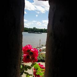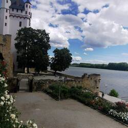 Ich kann bei meiner Weiterfahrt den wunderbaren Gerüchen der in voller Blüte stehenden Rosenbeete der kurfürstlichen Burg Eltville (ein Teil der Stadtbefestigung aus dem 14. Jhd.) nicht entkommen. Gerne halte ich inne und genieße den Blick auf den Rhein.