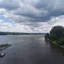 Ein kurzer Abstecher in die Altstadt (leider nicht zu meinem Töchterchen Sophie, die grad Malle genießt ) und zum Medienhafen mit seinen teils futuristisch anmutenden Gebäuden und dann wir sind endlich wieder in der Schönheit und Stille der Natur. Kilometerlang. Der Rheinradweg, immer den Rheinschleifen folgend, ist wunderschön angelegt. Kaum durch Ortschaften, keine großen Straßen...nur durch die Auwälder und Feuchtwiesen des größten Naturschutzgebiets Düsseldorfs, häufig mit Blick auf den hier so breiten Strom.