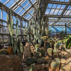 geht es in Richtung botanischer Garten, der mit einer großen Vielfalt an Pflanzen aufwartet. Im Gewächshaus gibt es außerdem Kakteen in allen Größen und Formen.