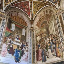 Wir besuchten die Sehenswürdigkeiten, bestaunten die Kathedrale von Siena von innen und assen schliesslich unser erstes Panini auf dieser Reise. 😍Les mer