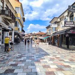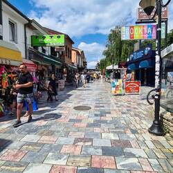 Es war an der Zeit den gleichnamigen Ort zu dem See zu besuchen und so fuhren wir weiter nach Ohrid. Wir fanden einen kleinen Parkplatz ausserhalb der Stadt, in der prallen Mittagshitze flanierten wir dem Weg entlang Richtung Stadt. 😎
