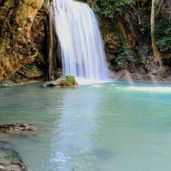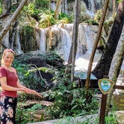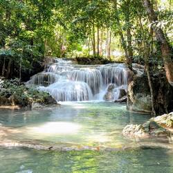 Am nächsten Tag fuhren wir zum Erawan National Park, bekannt für seine kristallklaren Wasserfälle und den dichten Urwald. Wir wanderten einige Kilometer durch tropische Vegetation, es war warm, der Weg zu den Wasserfällen lang, aber wunderschön.