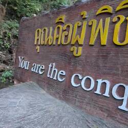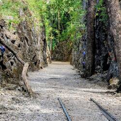 Mit dem Gefährt fuhren wir zum Hellfire Pass, einem bekannten Abschnitt der Thailand Burma Railway. Die Strecke wurde hier direkt durch harte Felsen gesprengt. Nachts leuchteten Fackeln die Schlucht wie die Hölle aus, daher der Name. 🔥