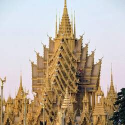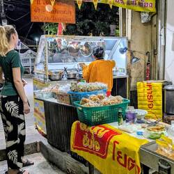 Tagsüber erkundeten wir die Stadt, die wir als sehr authentisch erlebt haben. Wir besuchten verschiedene Tempelanlagen, wobei häufig noch gebaut oder schon restauriert wurde. Dabei ist besonders Philipp immer wieder von der Art und Weise fasziniert, wie in Thailand gebaut wird. Unser Highlight war jedoch der Nachtmarkt mit seinem breiten Angebot an Kleidern, Kosmetika, Haustieren und Lebensmitteln. Ein Grossteil der Gerichte wird schon vorgekocht verkauft und von den Thais in Plastikbeuteln Take-away mitgenommen und erst zu Hause gegessen. Für zwei Touris ohne Teller im Gepäck folglich nicht ganz so interessant. 😉