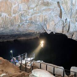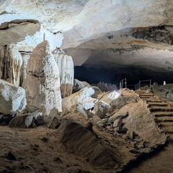 Wir stoppten an einer grossen Treppe, der Kapitän sagte "five minutes yes" und wir liefen munter in die Dunkelheit. Der Weg war offensichtlich mit Lichtbewegungsmeldern ausgestattet und während wir gingen, wurden immer weitere Teile der Höhle erhellt. Und die war der absolute Wahnsinn!