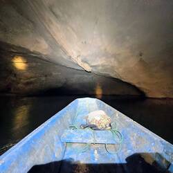 Diese besuchten wir am folgenden Tag. Gemeinsam mit einer Französin wurden wir von unserem Kapitän mit Schwimmwesten und Stirnlampen ausgerüstet. Bevor wir loslegten, erfuhren wir noch eine kuriose Geschichte: Früher waren die Menschen skeptisch, ob der Fluss tatsächlich komplett durch den Berg führt. Um das zu testen, liessen sie markierte Enten am Eingang frei. Erst als diese Stunden später auf der anderen Seite des Berges wieder auftauchten, wusste man sicher, dass der Weg frei ist. 🦆