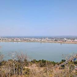 Um zu unserem Tagesziel, einem grossen Buddha (für uns gleichzeitig auch ein Aussichtspunkt 😉) zu gelangen, mussten wir den Fluss über eine riesige Brücke passieren.