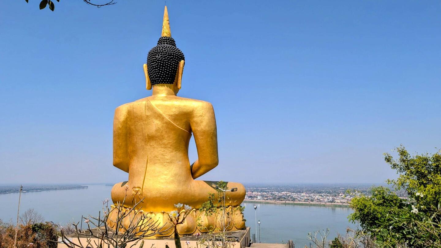 Am nächsten Tag fiel uns gleich auf, dass sich das Landschaftsbild geändert hatte. Die Karstfelsen und grünen Hügel hatten wir hinter uns gelassen. Selbst der Mekong präsentierte sich hier anders mit einer beeindruckenden Breite von 1,5 Kilometern. 🤯