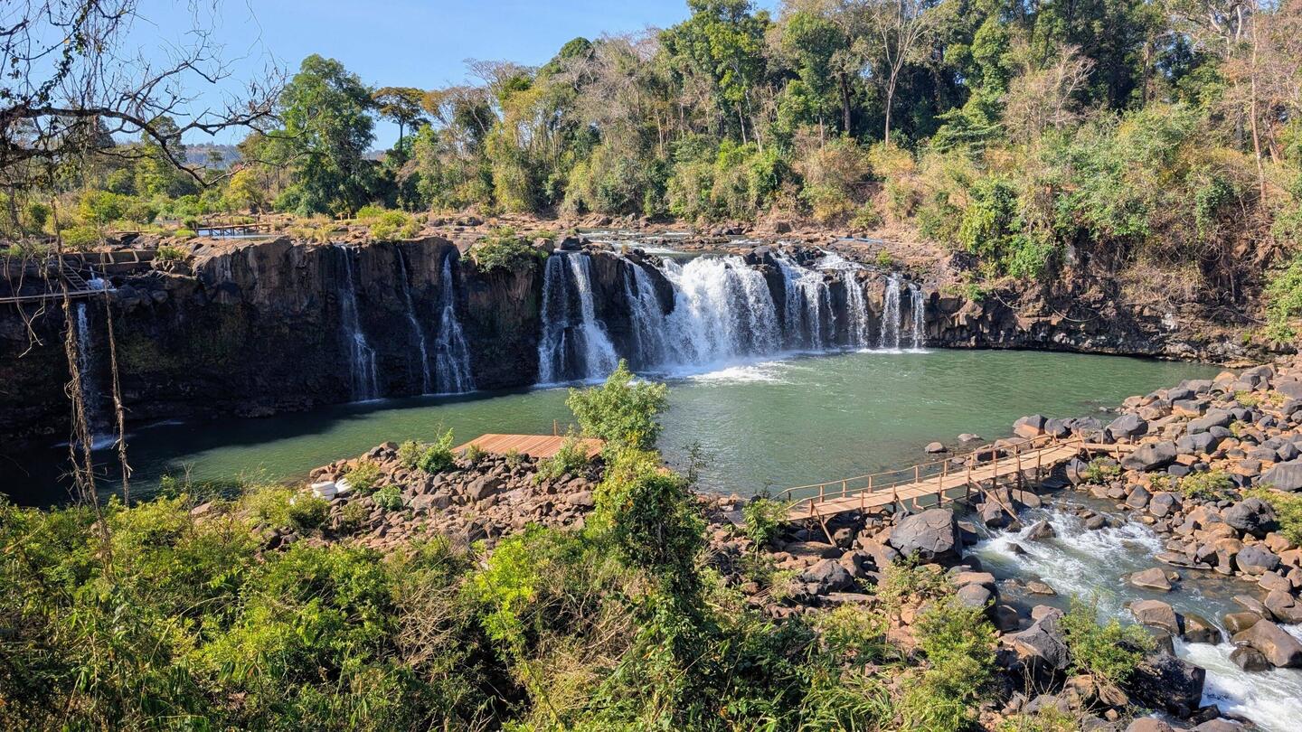 Unterwegs besuchten wir den Wasserfall Tad Yuang. Auf Schwimmen hatten wir keine Lust, doch in der Gischt zu stehen hatte schliesslich auch einen abkühlenden Effekt und der Wasserfall war zudem sehr schön. 😊