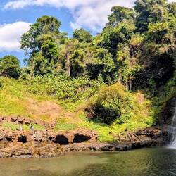 Von dort aus machten wir eine kleine Wanderung zu einem nahegelegenen Wasserfall. Schon von weitem sahen wir, dass der Wasserfall kaum mehr Wasser führte, und so machten wir schnell kehrt, um den Bauern nicht in die Felder zu laufen.