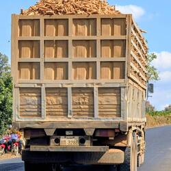 Sobald sie trocken sind, füllt man sie in grosse Säcke ab, die auf hoch beladenen Lastwagen zu den Fabriken abtransportiert werden. 🚚