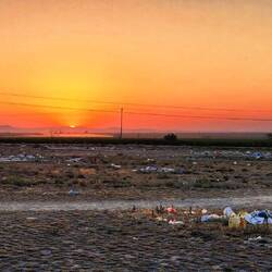 Den kostenlosen Stellplatz der Stadt fanden wir nicht schön, wir suchten uns selber einen Platz und fanden in der Dämmerung ein Feld voller Müll. Immer noch schöner als der andere Platz und im Müll ausblenden sind wir seit März 2022 Meister geworden.