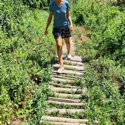 Nach ganzen vier Kilometer über einen schönen Wanderweg, welcher vorbei an abwechslungsreichen Felsformationen und Tunnels führte, fanden wir endlich einen Container und Chantal wurde ihr Last los.
