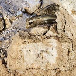 Am folgenden Tag sahen wir uns noch mehr Felsenhäuschen an, wo wir dann auch einen halbtoten Hasen sahen. Philipp wollte ihm etwas Wasser in eine nahegelegene Kuhle schütten, worauf ihm der Hase an die Brust gesprungen ist.