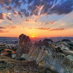 Schlurfend in Trainerhosen streiften wir über das Felsplateau, aber leider war weit und breit kein Ballon in Sicht, dafür streifte die Sonne langsam die Hügel und erhellte den Tag in grandiosen Farben. Das war aber leider auch das einzige, was an jenem morgen in den Himmel stieg.