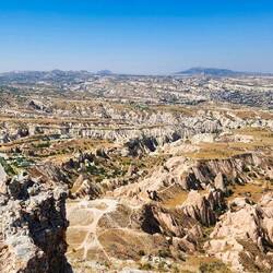 Nach dem morgendlichen Spektakel war es an der Zeit einzukaufen und Wasser zu tanken. Wir füllten den Wassertank, unsere sechs Duschflaschen und fuhren nach Ürgüp ins Migros. Nachdem entschieden wir uns einen neuen Platz aufzusuchen, ziemlich genau auf der gegenüberliegenden Talseite, doch der Platz war nur halb so schön wie der bisherige, so entschieden wir uns wieder auf altbekanntem Terrain zu parkieren.