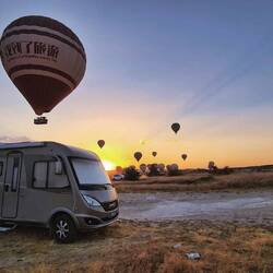 Am folgenden Morgen wollten wir eigentlich ausschlafen, doch wir wurden früh und vor allem laut geweckt. Mit verquollenen Augen sahen wir aus dem Fenster, direkt auf einen gelandeten Ballon und auf einen Korb voller Passagiere. Etliche Ballone landeten neben uns und das war bombastisch. Sie flogen oft nur einen Meter über dem Wohnmobil, so dass wir uns schon ein wenig Sorgen gemacht haben. 😅 Kurz darauf kamen auch schon die Touristenbusse angerast, um die Kunden nach dem Champagnertrinken wieder abzuholen.