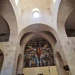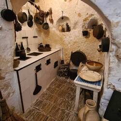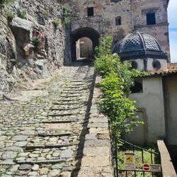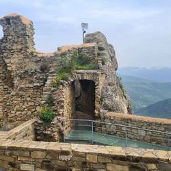Der Weg in die Ruinenstadt beginnt unten am Fuss, wir spazierten durch das Eingangstor und waren auf Anhieb vernarrt in den Hügel und in die Umgebung. Wir liefen den kleinen Pfaden entlang und entdeckten alte Häuser und Kirchen mit den originalen Malereien. Es ging stetig bergauf, die Aussicht in das Tal ist gesäumt von tausenden Olivenbäumen und wurde mit jedem Schritt bezaubernder. Über dem sandige Weg gelangten wir zu den Stufen welche hoch zur Burg führten. Auf den Überresten der Burgmauer sassen wir eine halbe Ewigkeit schweigend nebeneinander und genossen die frische Luft und die ewig weite Aussicht.