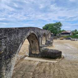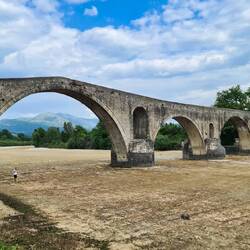 Die Brücke ist die bekannteste in Griechenland, der heutige Bogenbau geht auf das Jahr 1612 zurück.