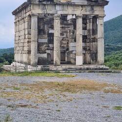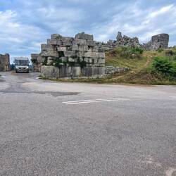 Die Messenier mussten sich ständiger Angriffe aus Sparta und aus Arkadien erwehren. Zum Schutz bauten sie um ihre Stadt eine gewaltige, über neun Kilometer lange Mauer, welche wir sogar mit dem Womo passiert haben. Die Informationstafeln waren auch hier reizlos, es kam uns vor wie ein Wikipediaeintrag. 😴