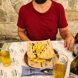Zu Mittag gönnten wir uns Pitas und am Abend setzten wir uns auf eine Bank am Meer, bewaffnet mit einer Flasche Wein und einer Zigarre. 🍷🚬