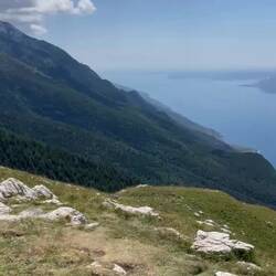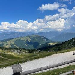 Von Malcesine sind wir mit der Gondel auf den Monte Baldo gefahren. Wir waren 1750 m hoch. Eine atemberaubende Aussicht. Aber Gewitterfliegen und die Warterei (2h) vor den Gondeln waren nicht schön.