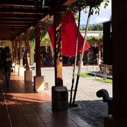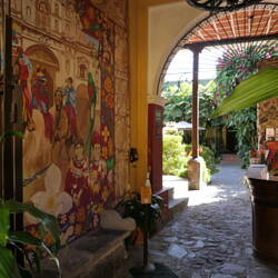 Das Hotel Santo Tomas hat einen sehr schönen Innenhof, in dem auch zahlreiche Papageien gehalten werden.