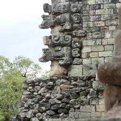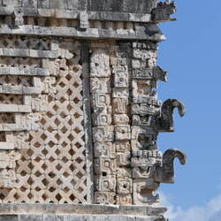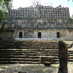Die Ruinenzone von Uxmal wird von der Pyramide des Zauberers dominiert, einer Pyramide mit rechteckigem Grundriss, dessen Ecken weiträumig abgerundet sind. Der Körper der Pyramide ist mit grobRead more