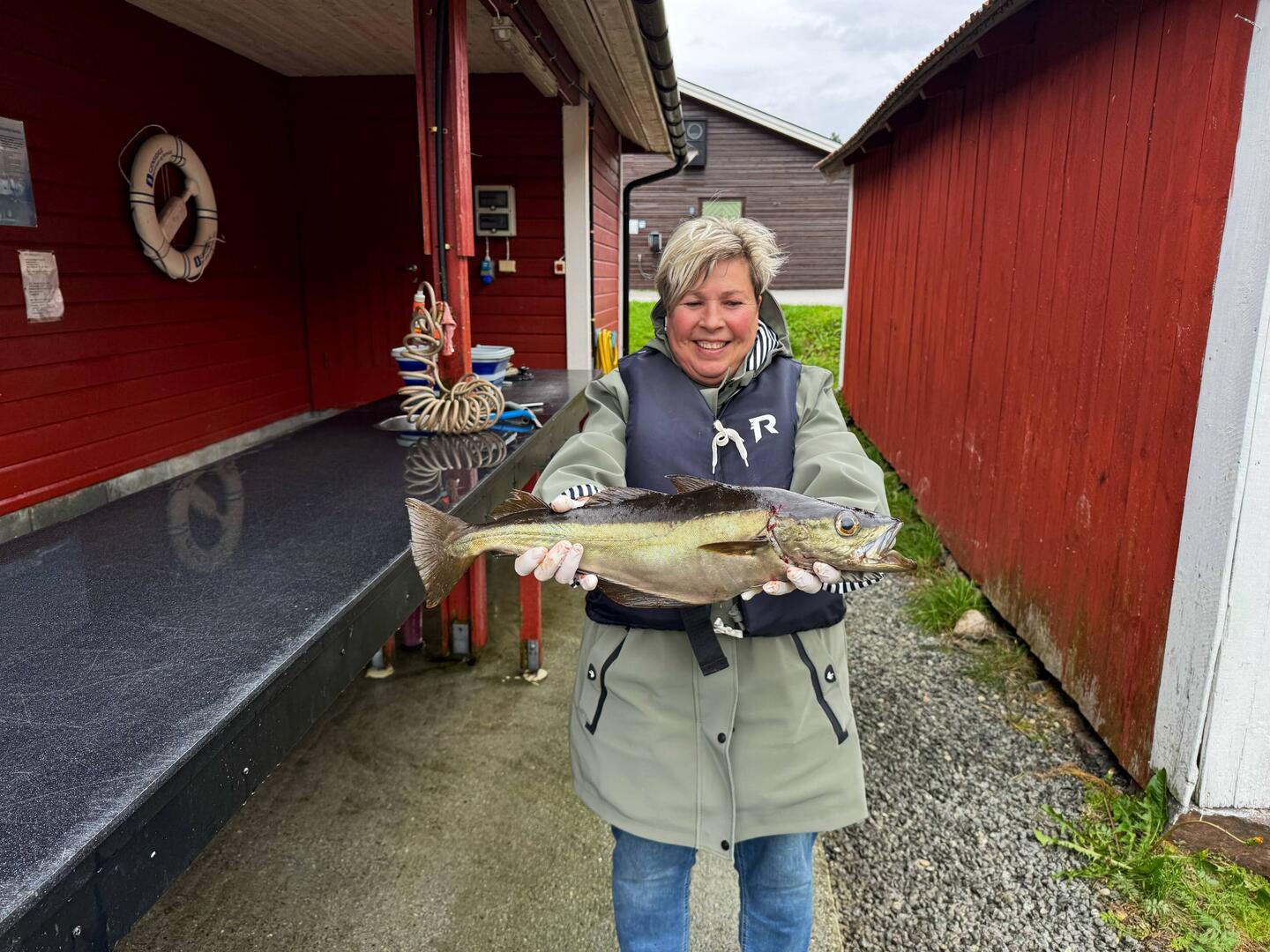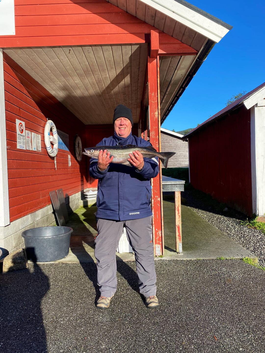 Beim ersten Angelausflug hat Sigrun ihren ersten Fisch selbst geangelt, einen Pollak in einer richtig guten Größe. Ich hatte nur drei Heringe und einen Dorsch
