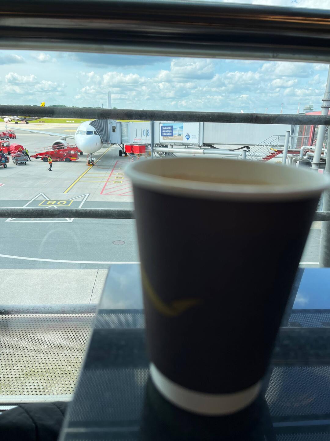 Verspätung ! Abflug um 16 Uhr … also Zeit für Kaffee