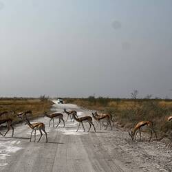 Als wir am Abend im Ethosha-Nationalpark ankamen, fuhren wir zum Namutoni Camp. Unterwegs sahen wir viele Zebras, eine große Elefantenfamilie, die die Straße blockierte, und sogar Löwen. Im CampRead more