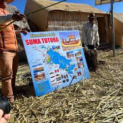 Fra: in partenza da Puno per Isla Taquile, sosta a Isla Uros, a 7 km da Puno, famose perchè sono isole galleggianti costruite utilizzando una pianta che cresce in acqua, la totora. Sull’isolaRead more