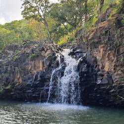 Die Fahrt ging am Donut Laden vorbei und wir erreichten nach gut einer Stunde den Red Dirt Waterfall.