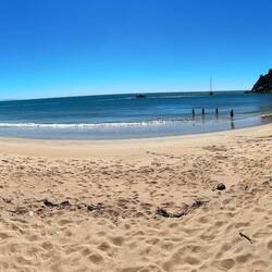 Hier wechselt der Ozean durch die Tiede und das Silizium im Sand alle paar Minuten die Farben. Durch das Silizium wird das Licht reflektiert, was zu der blauen Farbe des Wassers führt.