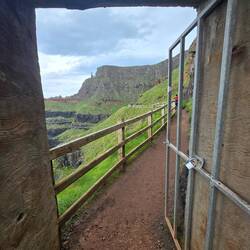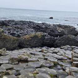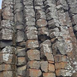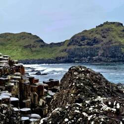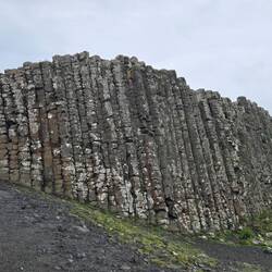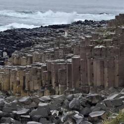 The Giant's Causeway are basalt columns that jut upwards out of the sea at this iconic landform. The basalt stone columns were left by volcanic eruptions 60 million years ago. It is located in CountyLeer más
