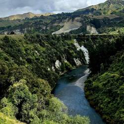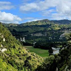 Today we caught the Scenic Northern Explorer train from Wellington to Auckland. It was a day long, leisurely trip, mostly through the middle of the North Island. We crossed viaducts, passed throughLeer más
