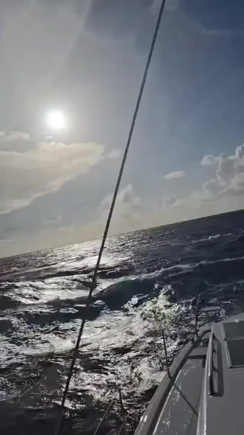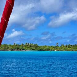 Départ au levé du jour. Nous longeons l'atoll de Rangiroa, accompagnés par les oiseaux, puis les dauphins. Gros clapot dans la passe d'Avaturu.