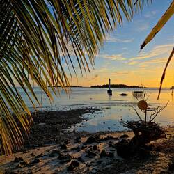 Départ de Bora Bora au petit jour, pour Huahine. Passage dans le lagon entre Tahaa et Raiatea. Réparation du génois en mer. Des dauphins nous accueillent à Huahine.