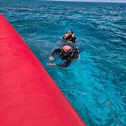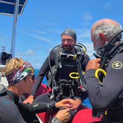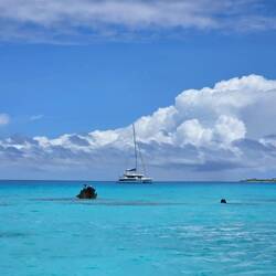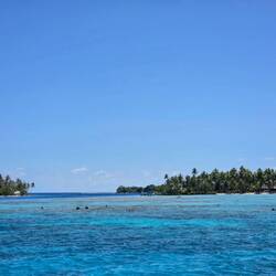 Des bleus sublimes dans ce coin de paradis de Gaston et Valentine, que nous ne verrons pas. Snorkeling magnifique. Grande variété de poissons, requins et 2 Napoléon. Piège à poissons. Couché deLeer más